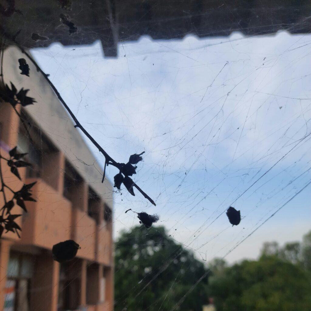 Removing reachable cobwebs are the intricate and often unsightly silk threads spun by various species of spiders, commonly found in